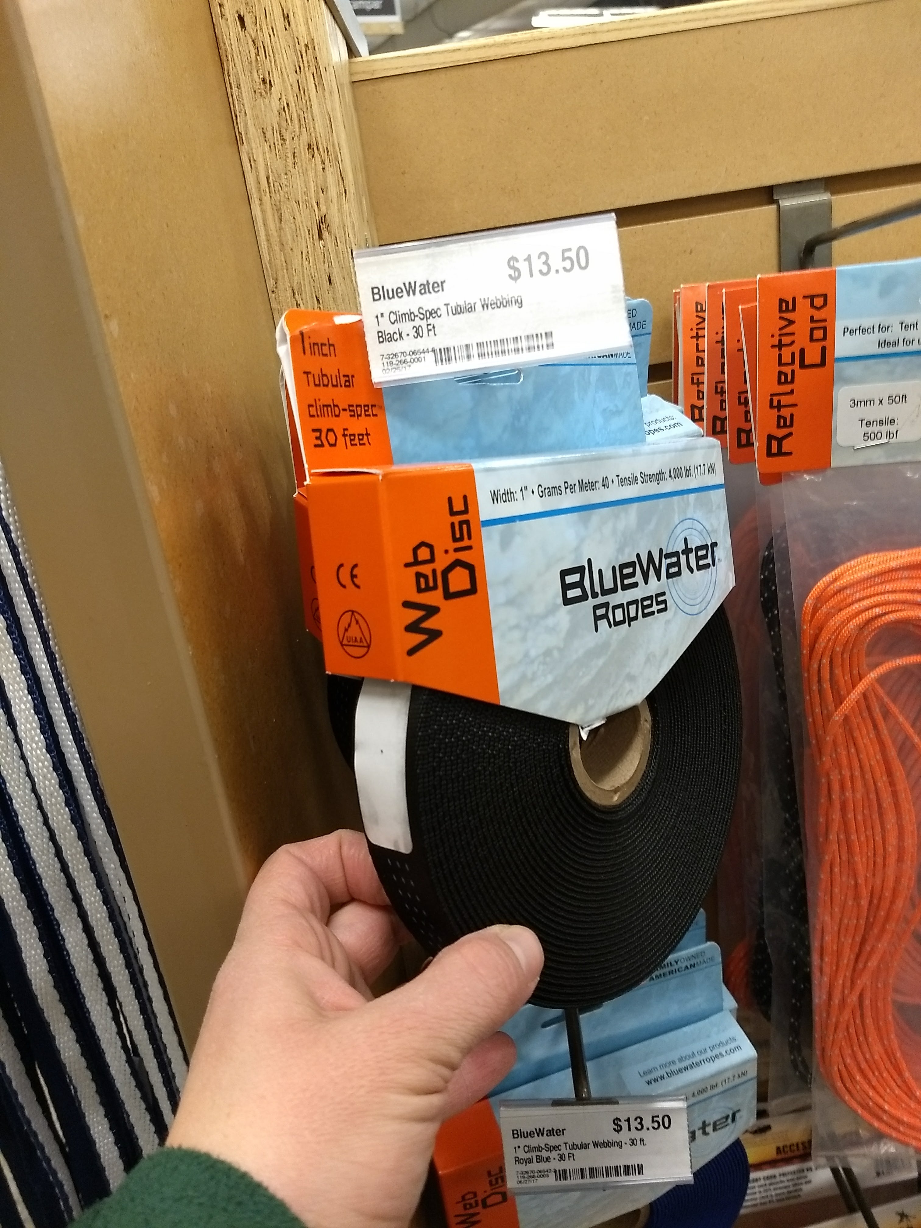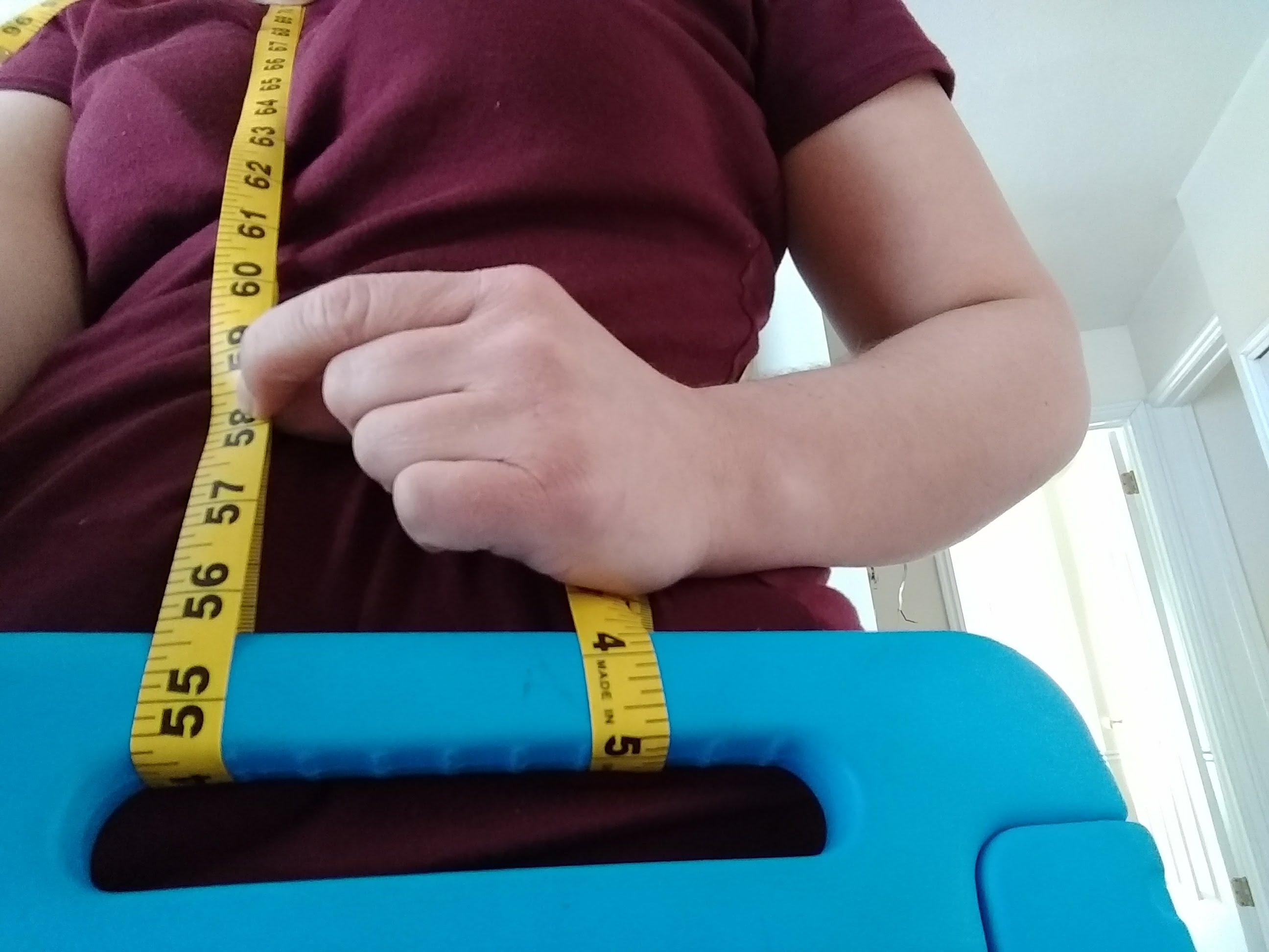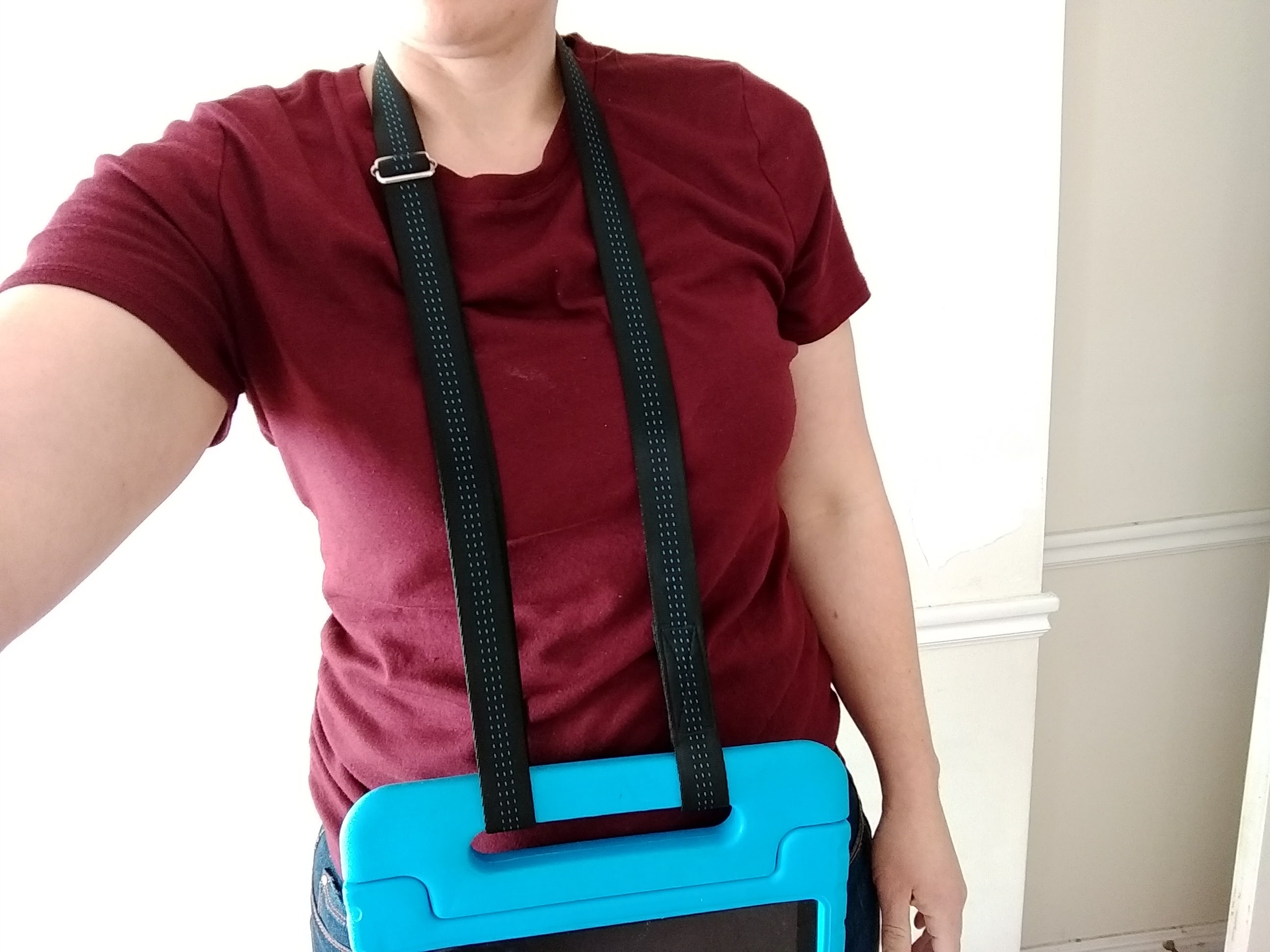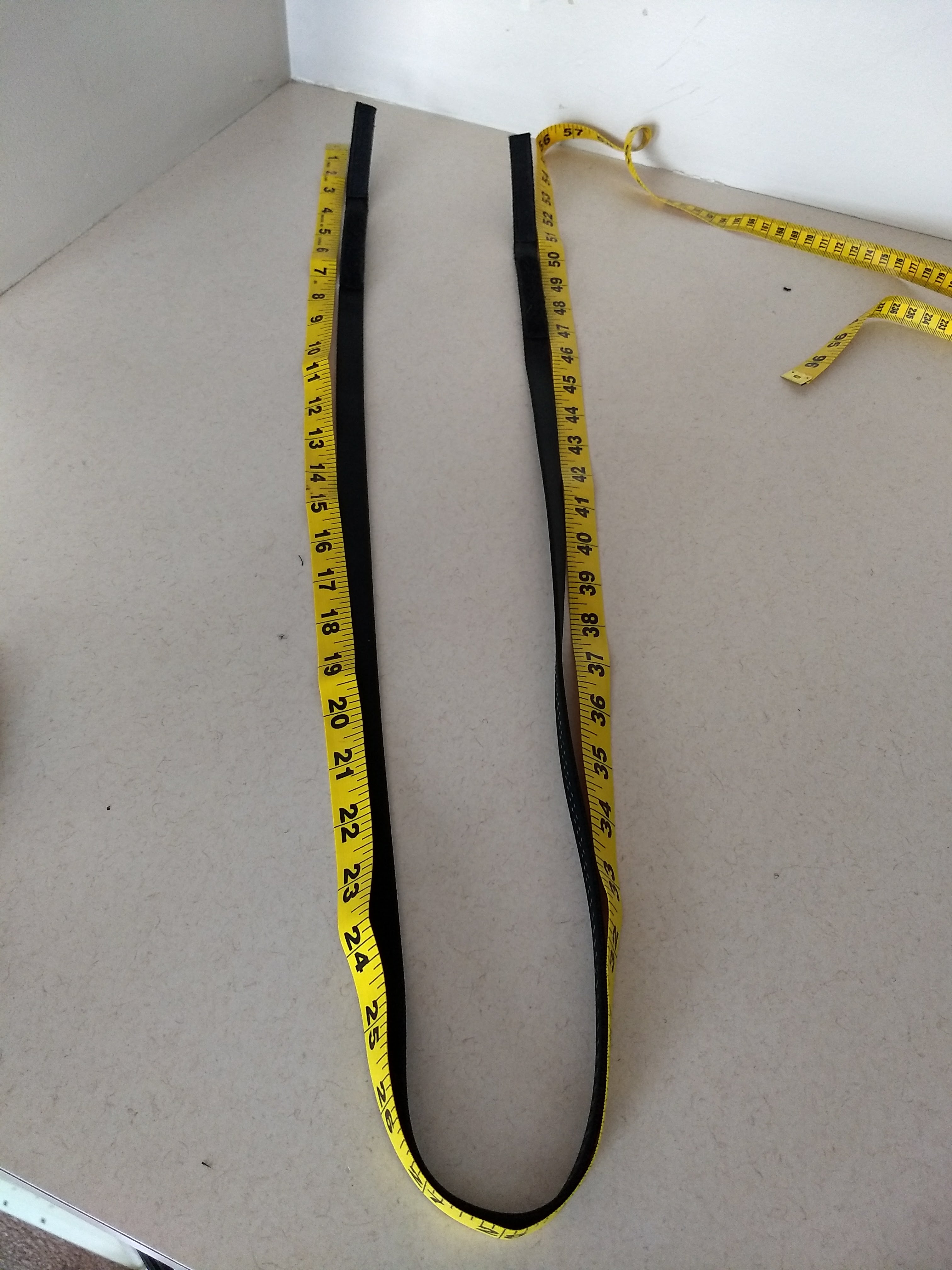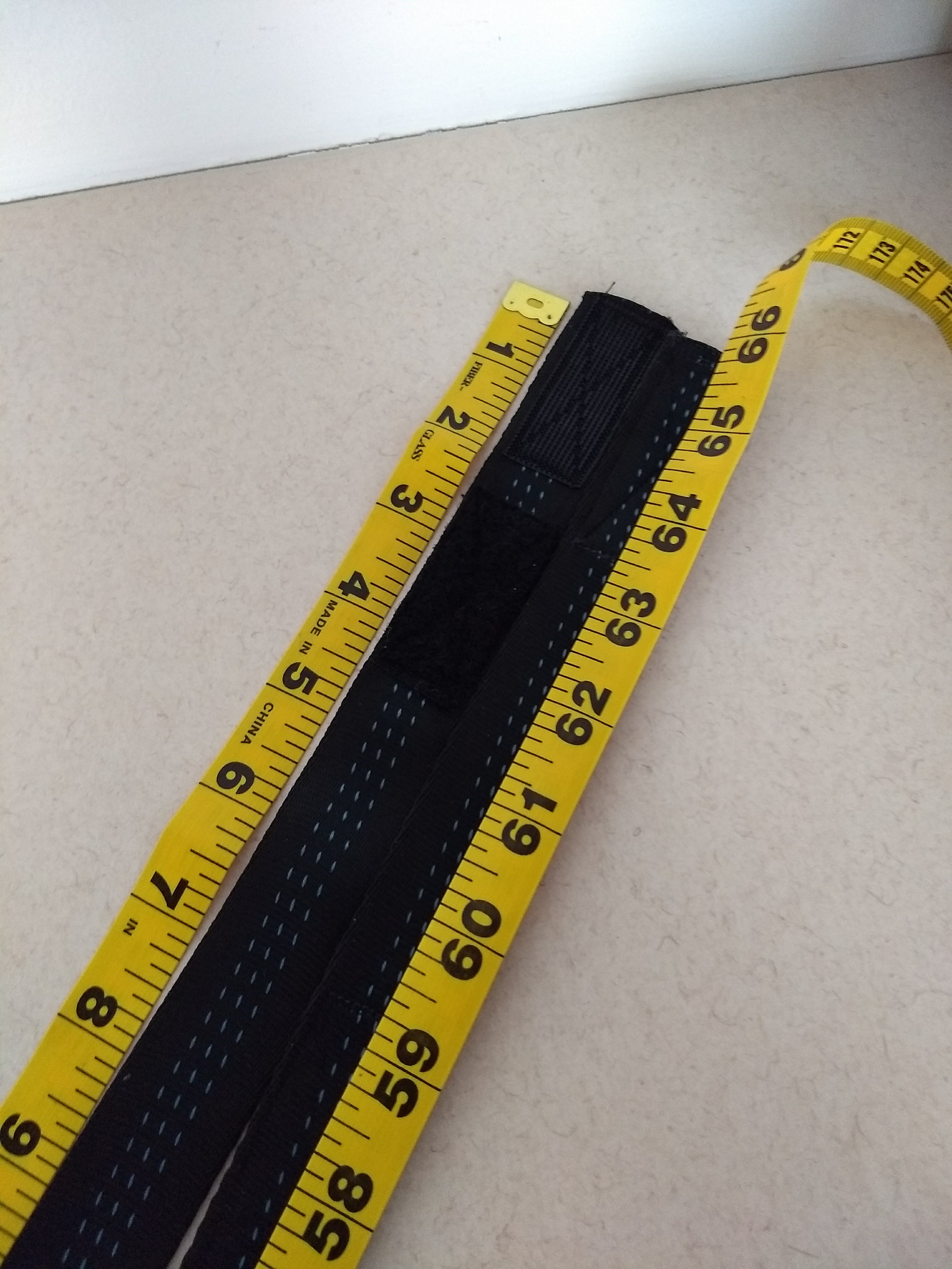 1: Measure how much webbing you need. This varies based on how long you make your Velcro strips and how wide the tablet handle is. (I used 1-inch webbing and needed about 58 inches. I am kind of short, but I do have a long torso.)