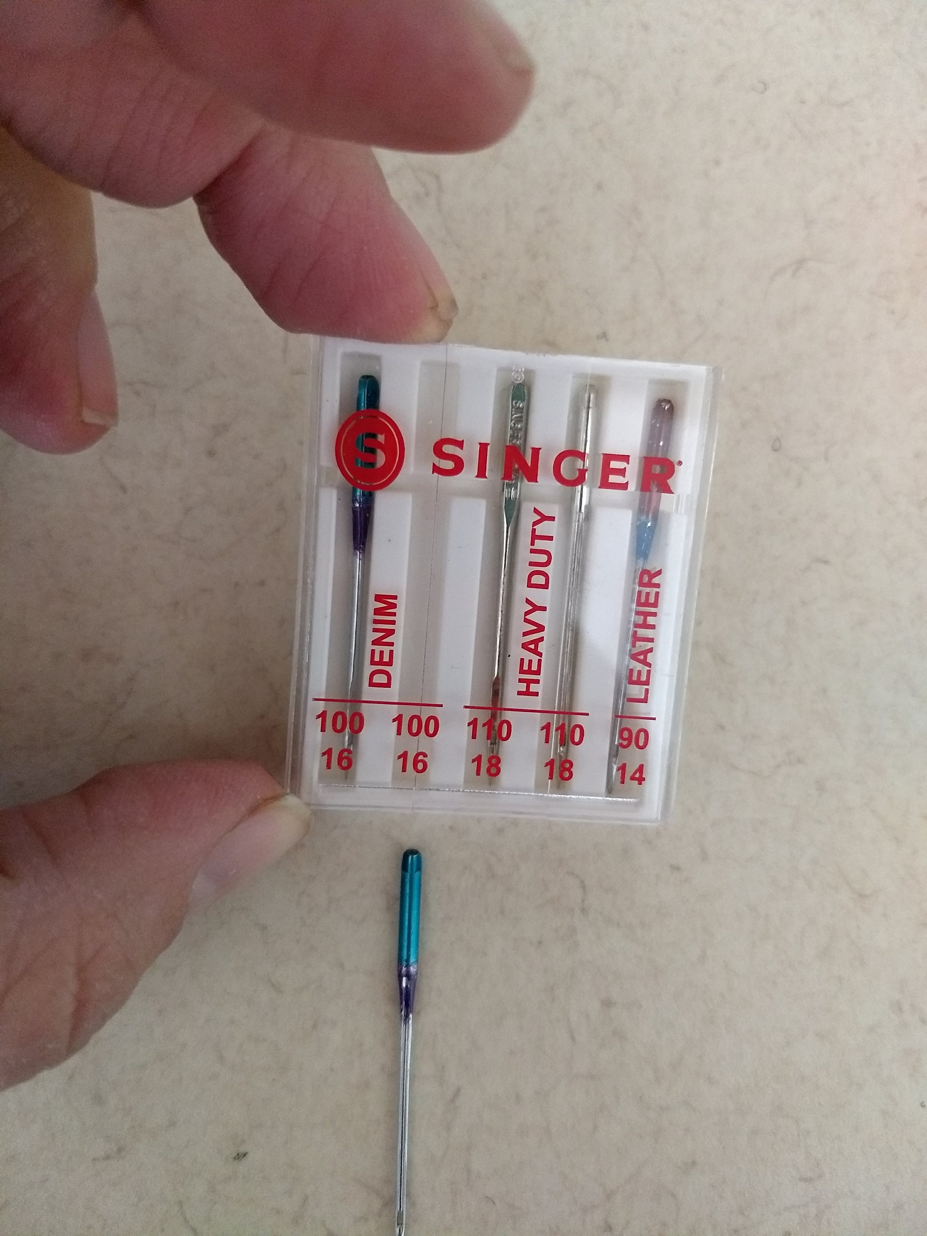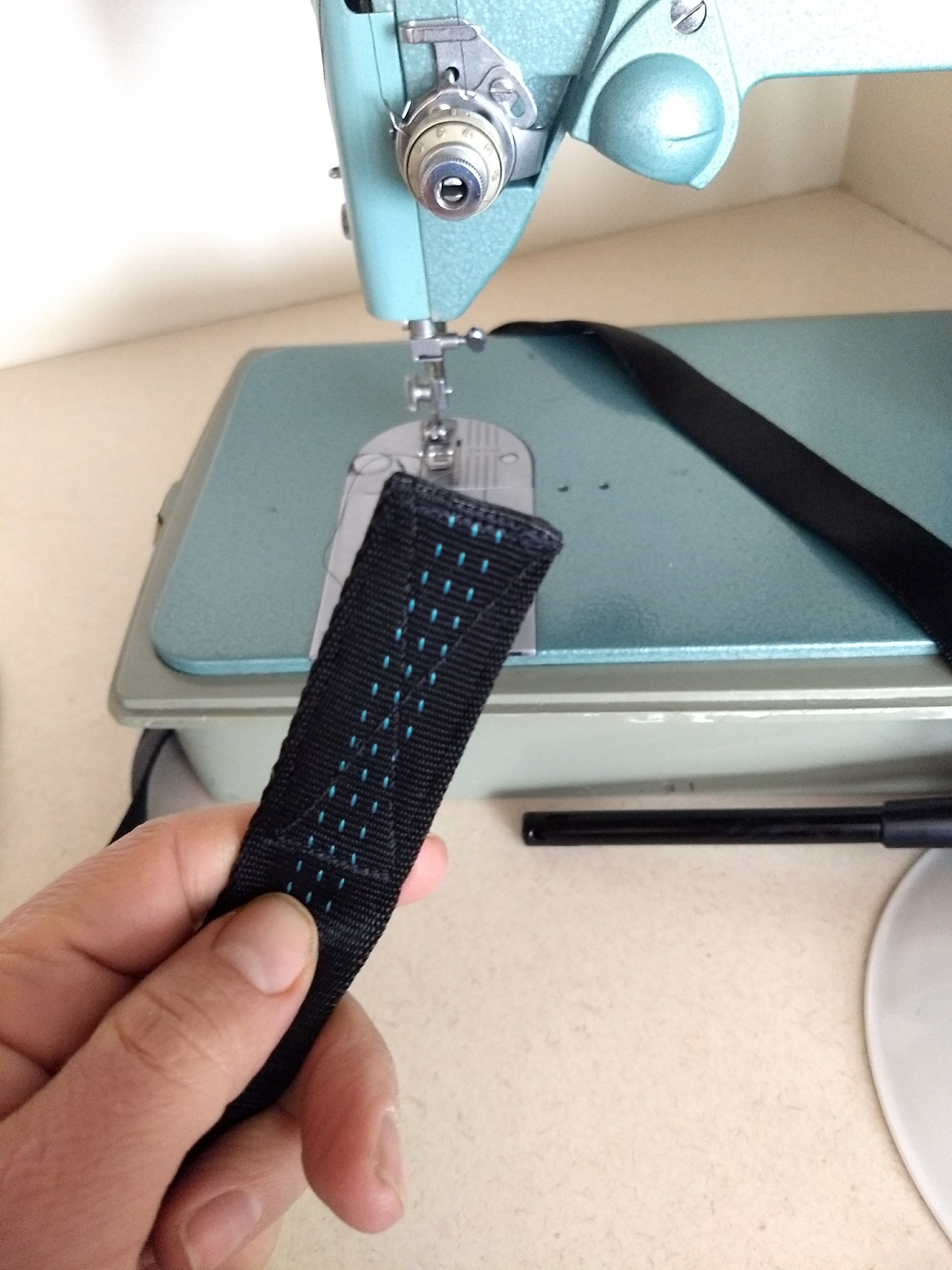 - Denim sewing machine needles make it a LOT easier to sew through the Velcro and webbing. However, you can use a regular sewing needle too – I only busted mine after making my 5th strap – and that might have been an operator error. The salesperson at Joanne’s also recommended mineral oil if the needle got stuck – but she might have just been talking about sewing through the Velcro adhesive.