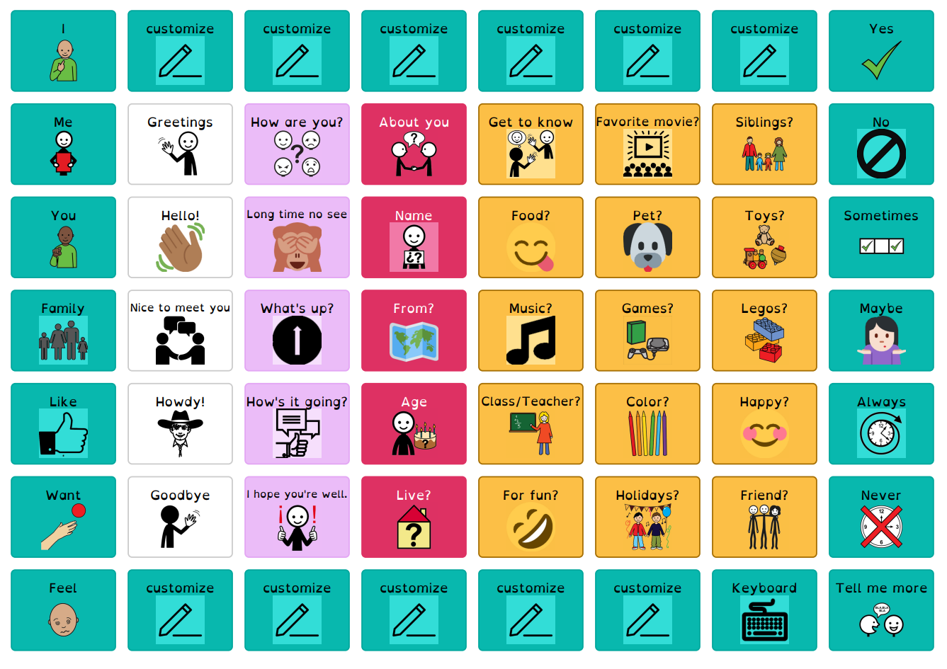 Before the activity, you can make your own copy of the speech board and customize any answers you want to personalize for your communicator. This helps them really connect to the topics and have the chance to share a bit about themselves.