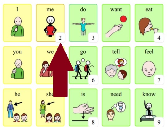 Look closely and you'll notice that speech buttons which open another board within CoughDrop have a number noted in the bottom corner -- this tells you which page to turn to find the sub-board linked to that button. It's like a map to help you get to the boards you need for communication so this paper version moves just like the board set you are used to in CoughDrop.