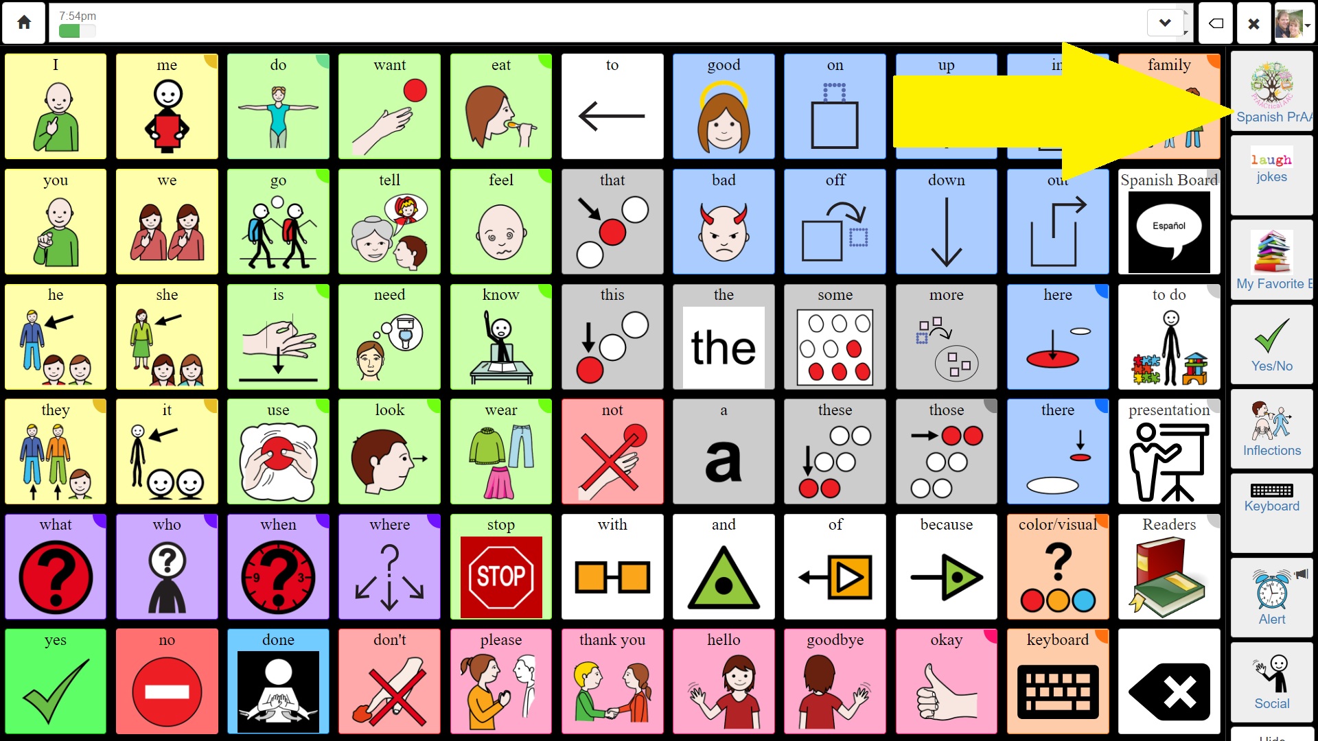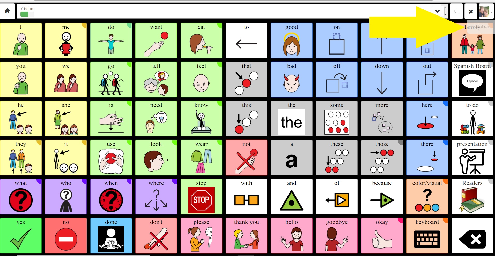 Within CoughDrop, each account is equipped with a fully customizable sidebar. This sidebar is a collection of speech boards which rests to the right of the selected board while in speak mode.