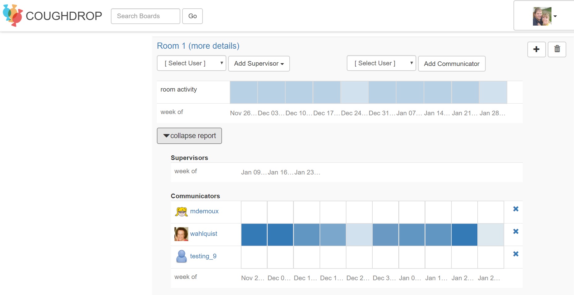 CoughDrop rooms could arrange communicators by physical classroom, age, SLP caseload or any other helpful grouping.