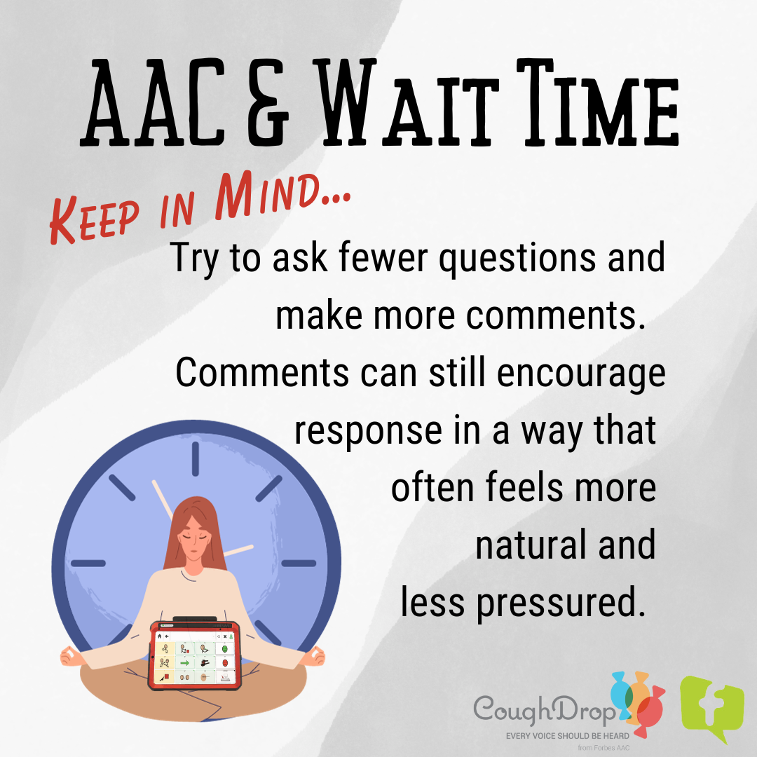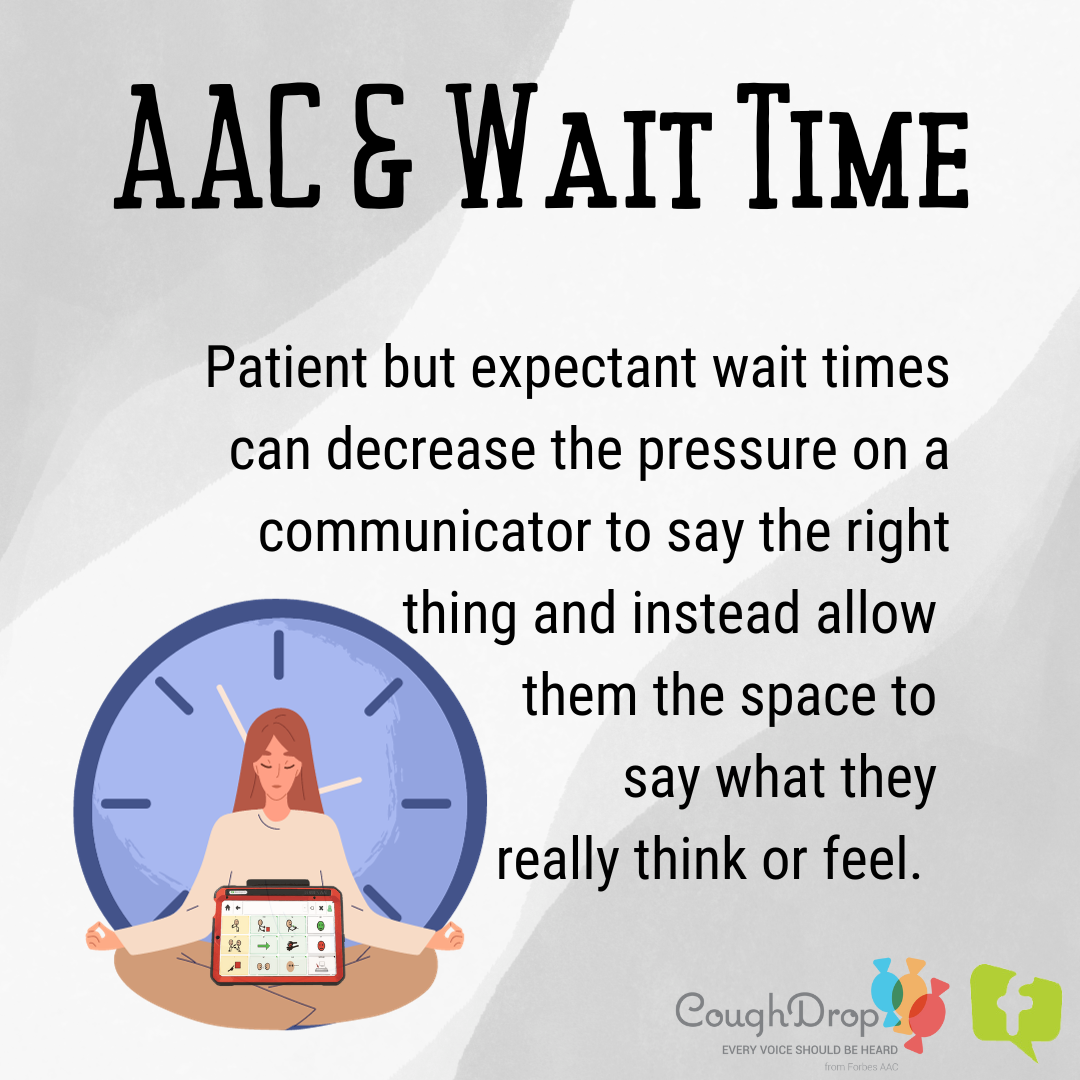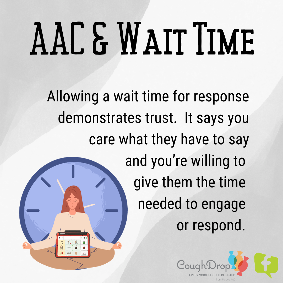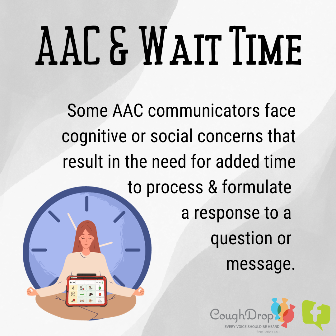 When working to build AAC abilities, one topic that often comes up is the need for longer wait times to benefit AAC users. This concept is important for communication partners and supporters to understand.